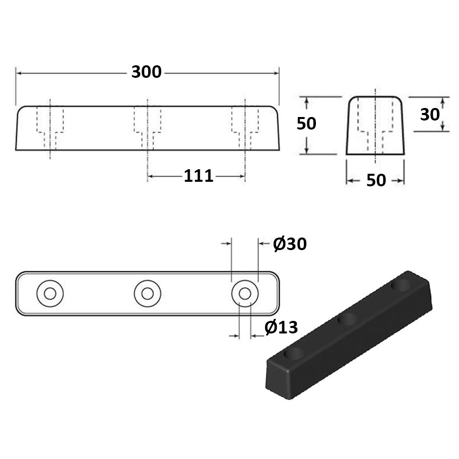 These rubber buffers are made from a hardwearing blend of SBR/NR rubber and are available in various sizes. These rectangular buffers can be used in a range of applications such as on boats, lorries and docking bays. The rubber buffers protect against harsh impacts, they can be bolted directly to the desired surface using the pre-drilled counter sunk holes.